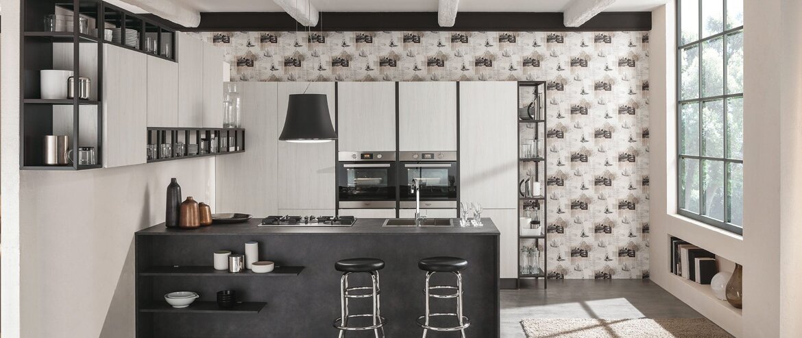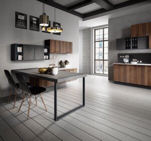 Contaminazioni vintage per una cucina che esprime un design attuale dal carattere forte.