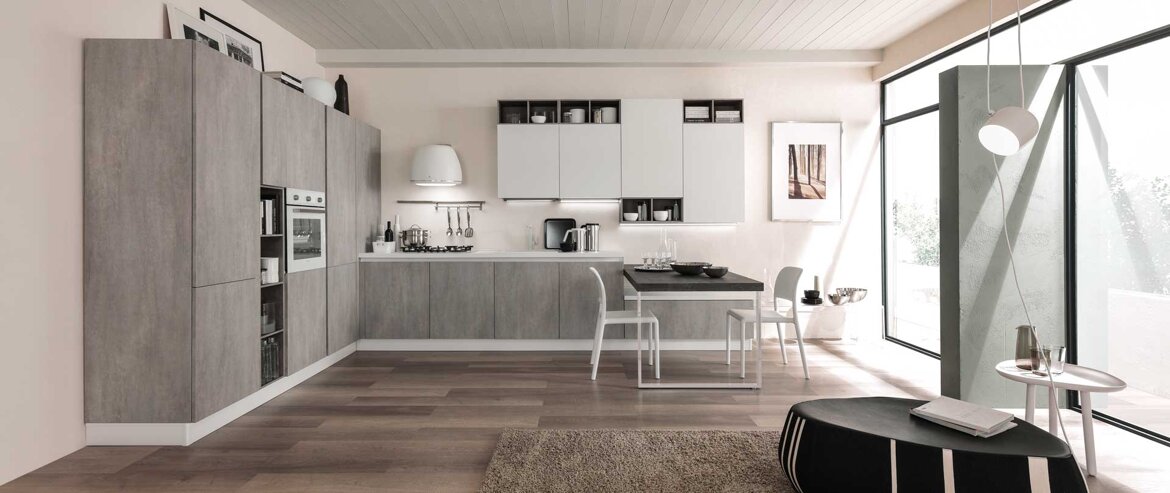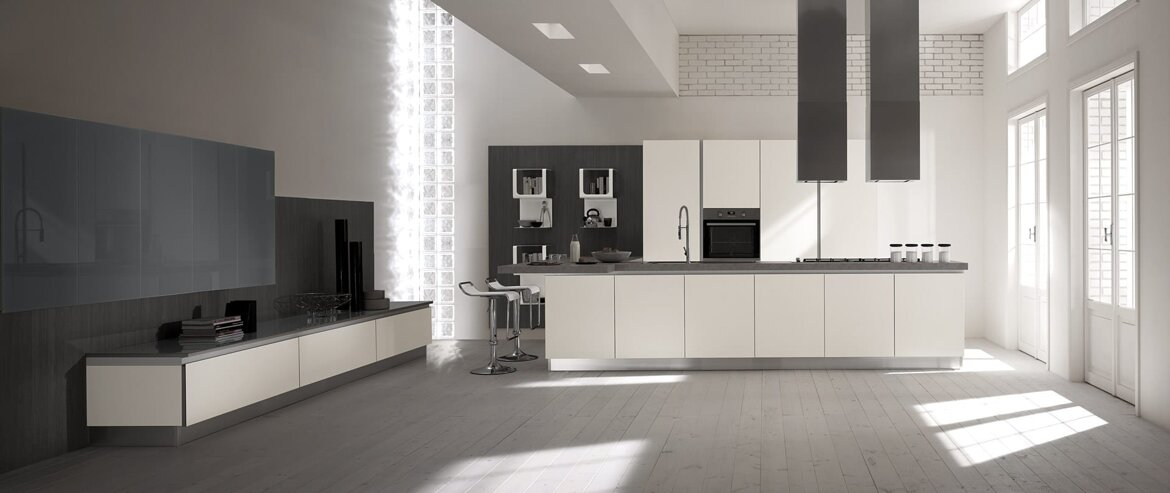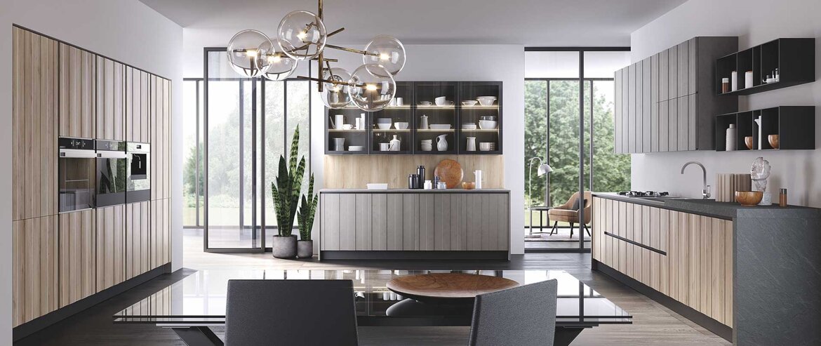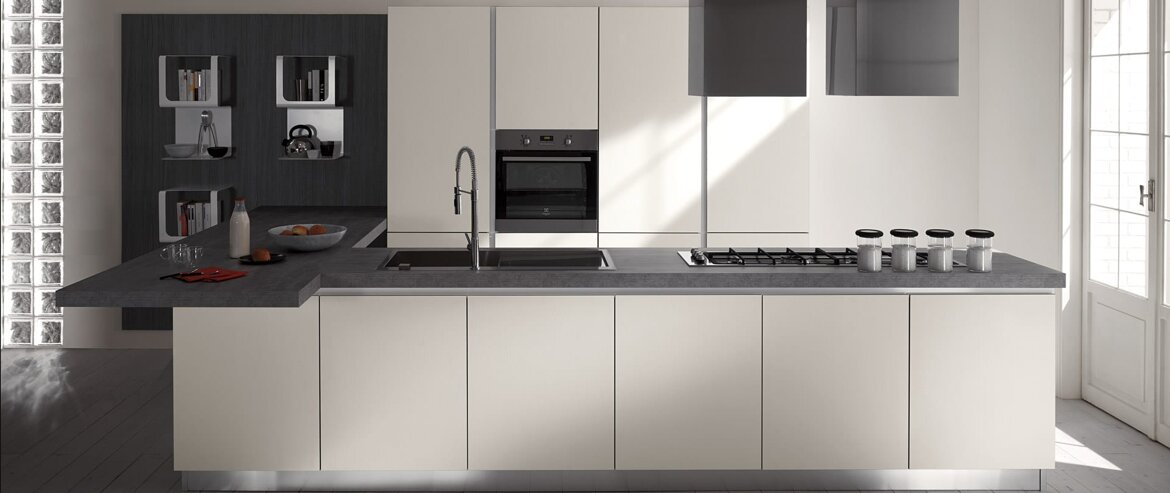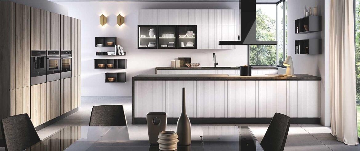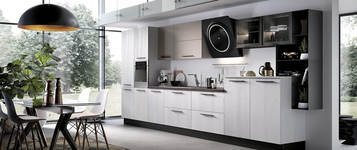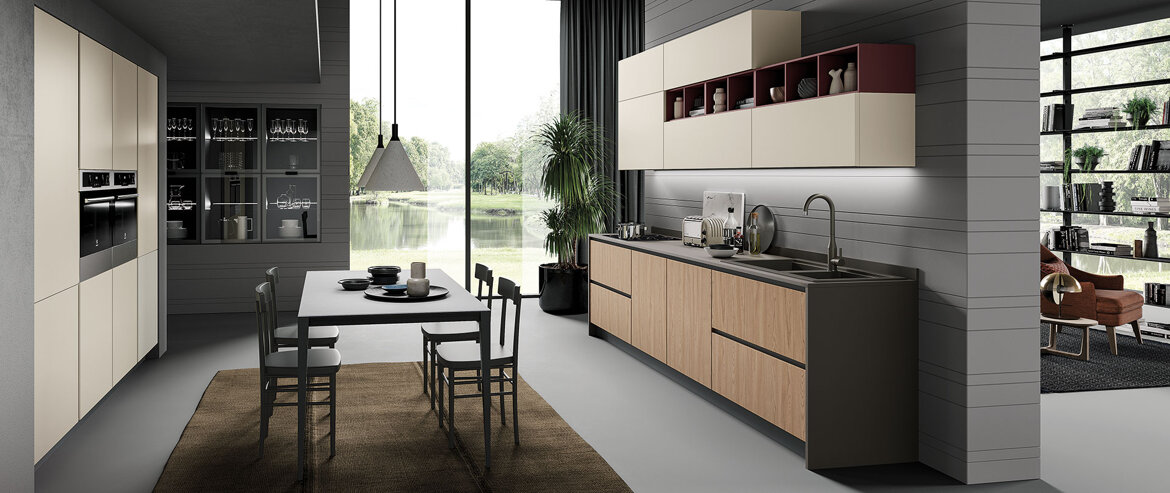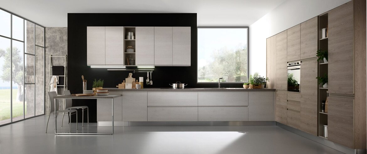 Le innumerevoli combinazioni estetiche sono caratterizzate da maniglie a gola e linee pulite. Funzionalità e capienza massima, celate da un’eleganza inconfondibile.