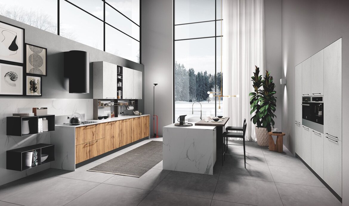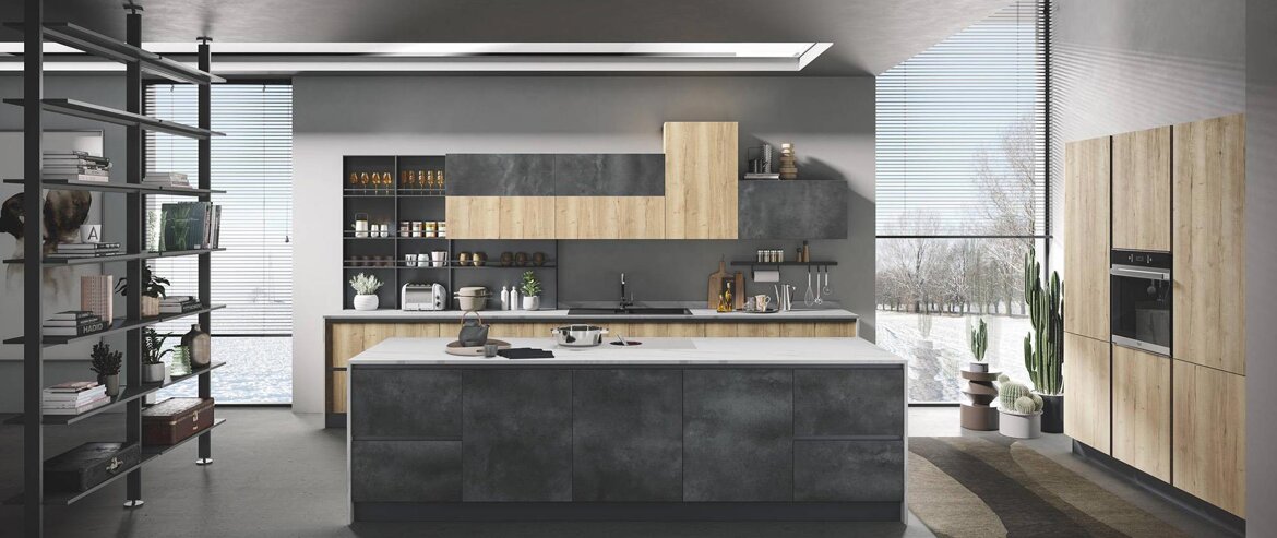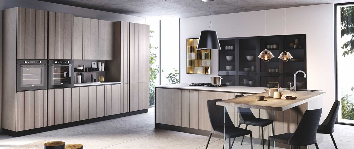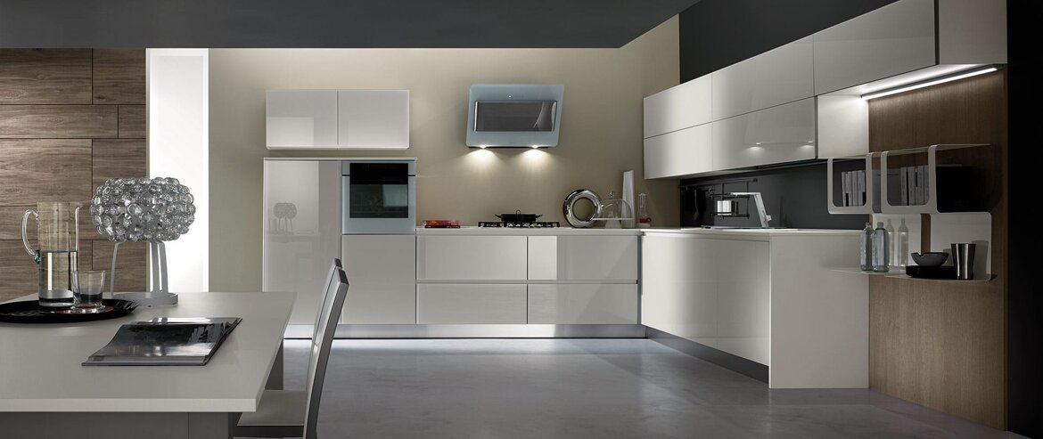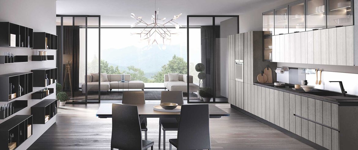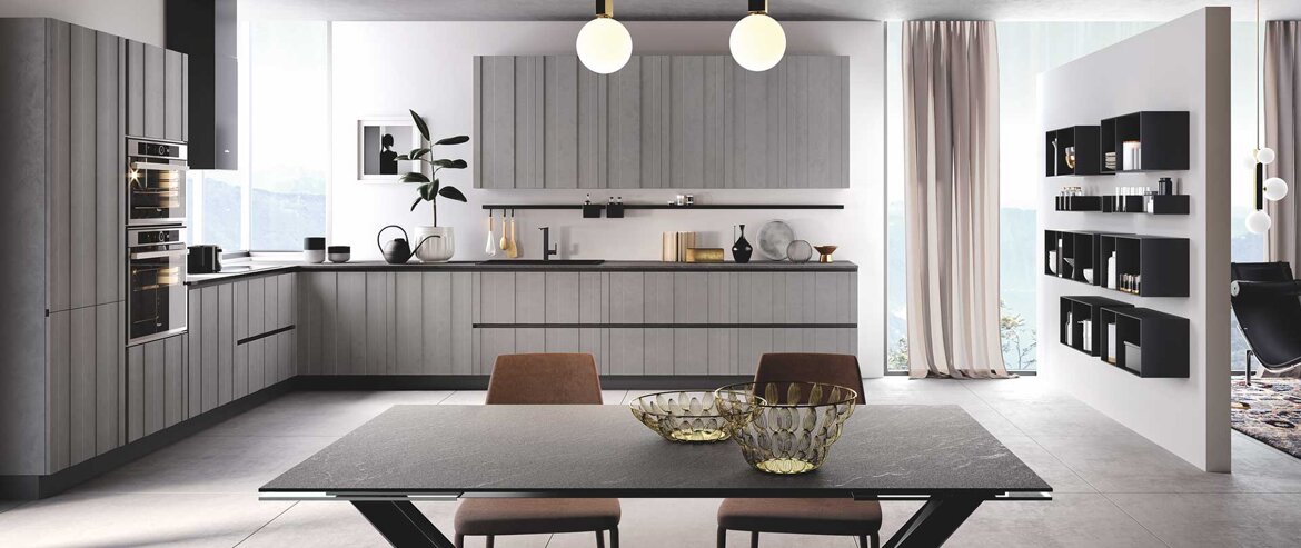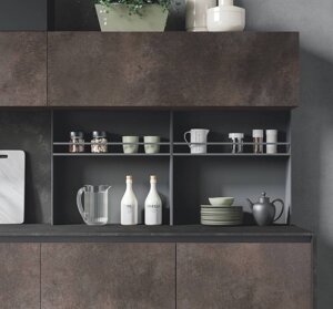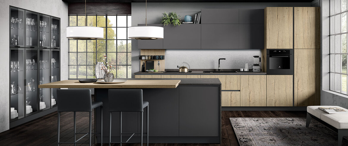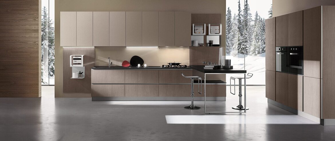 Le innumerevoli combinazioni estetiche sono caratterizzate da maniglie a gola e linee pulite. Funzionalità e capienza massima, celate da un’eleganza inconfondibile.
