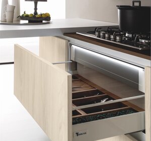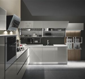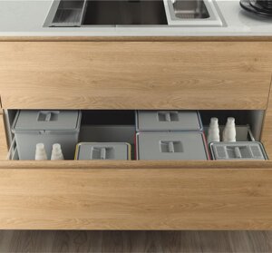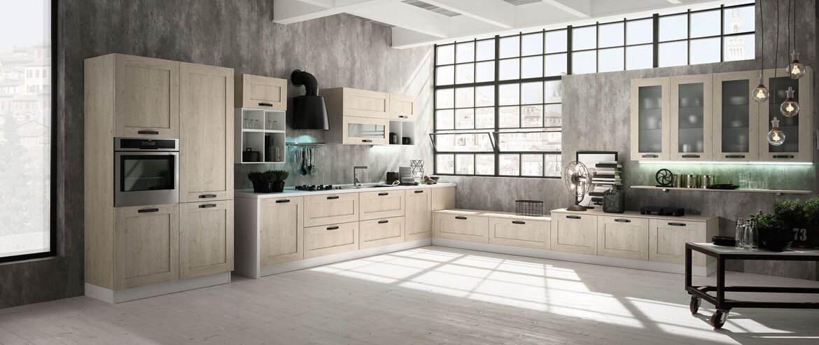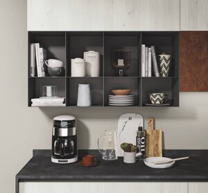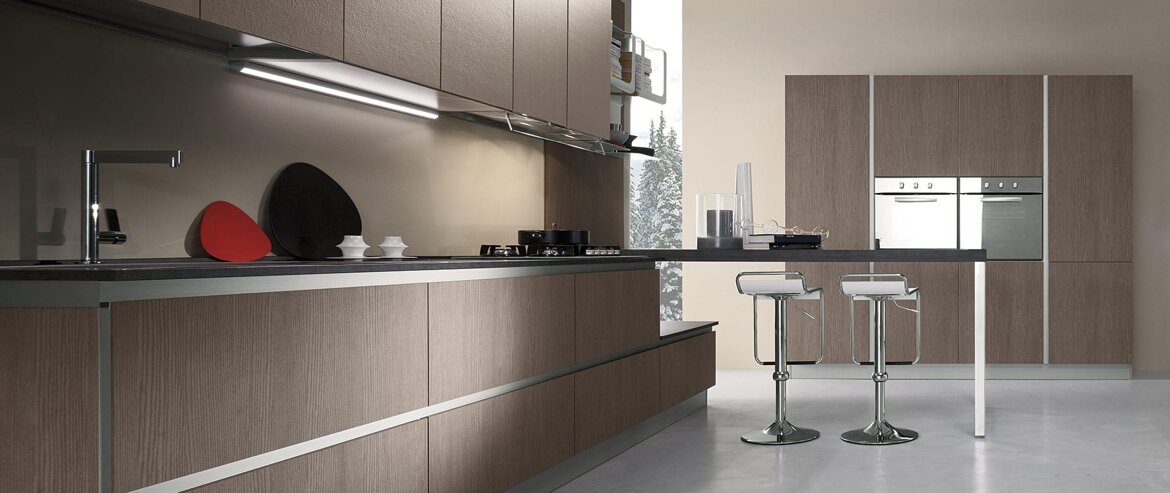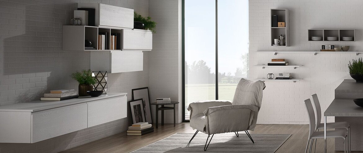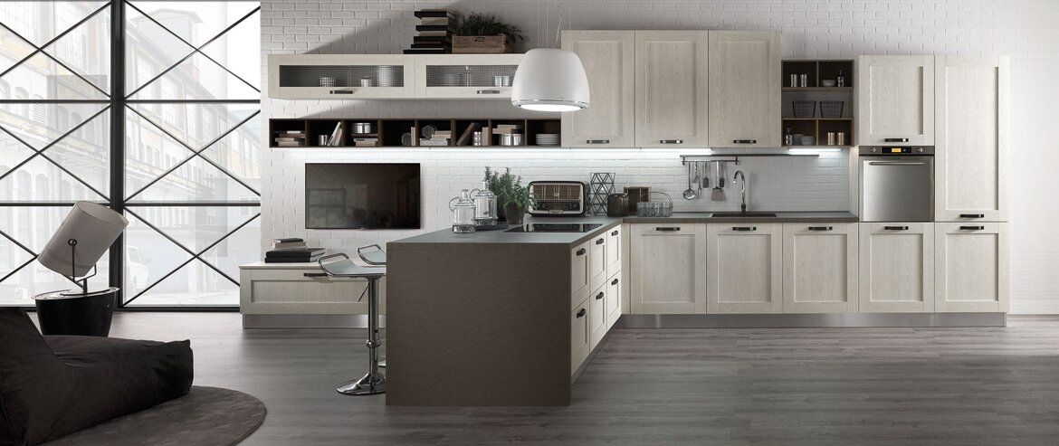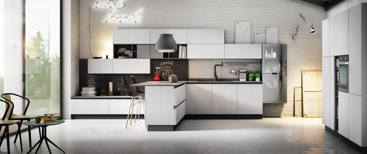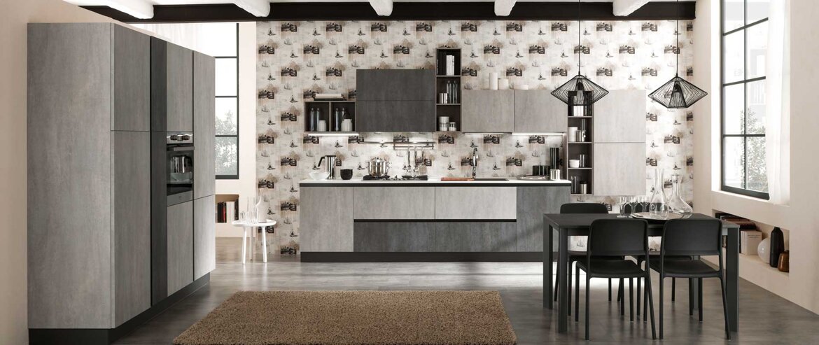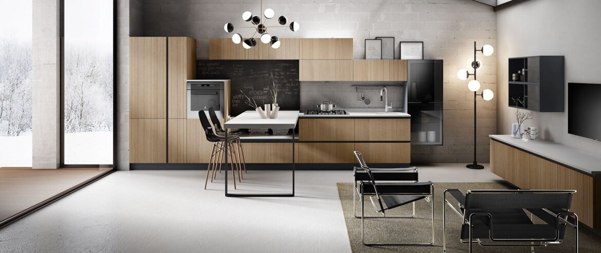 Le innumerevoli combinazioni estetiche sono caratterizzate da maniglie a gola e linee pulite. Funzionalità e capienza massima, celate da un’eleganza inconfondibile.