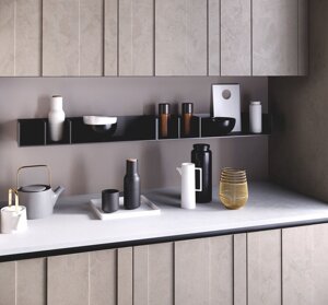 Mobilturi introduce con Camilla un nuovo programma di elementi a giorno nel colore lavagna. Disponibili in varie misure, possono essere installati in senso verticale o orizzontale.