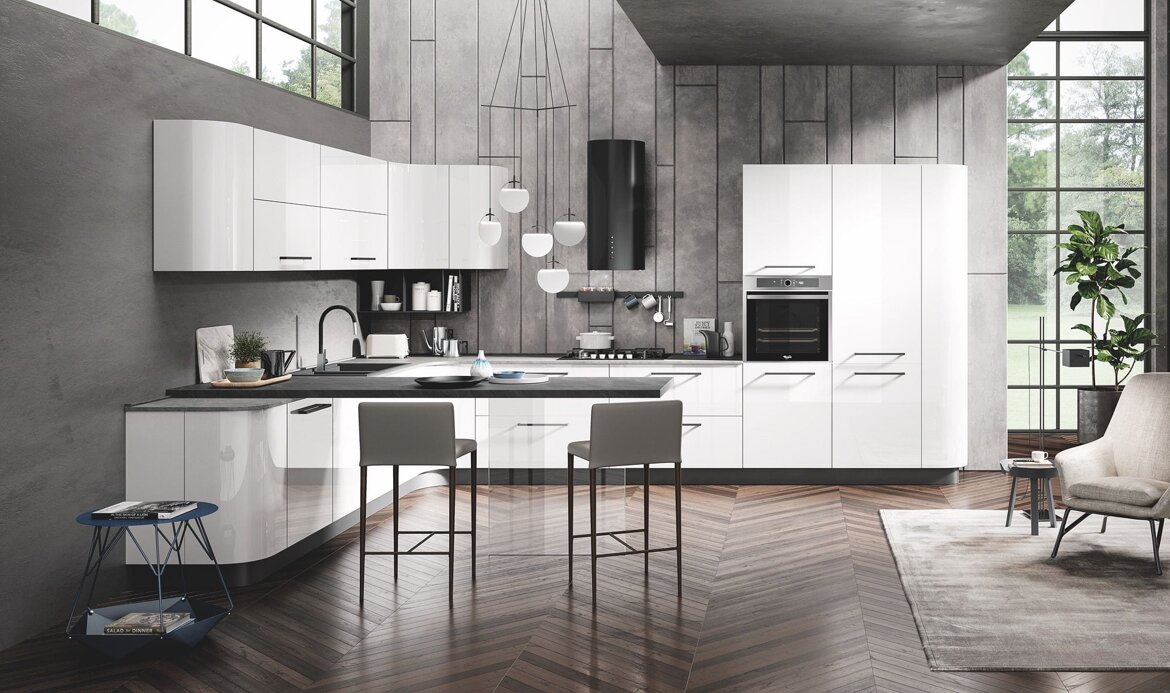 Le soluzioni compositive d’ultima tendenza, come isole e penisole, si concretizzano attraverso raffinate combinazioni di forme curve o rette dal design accattivante.