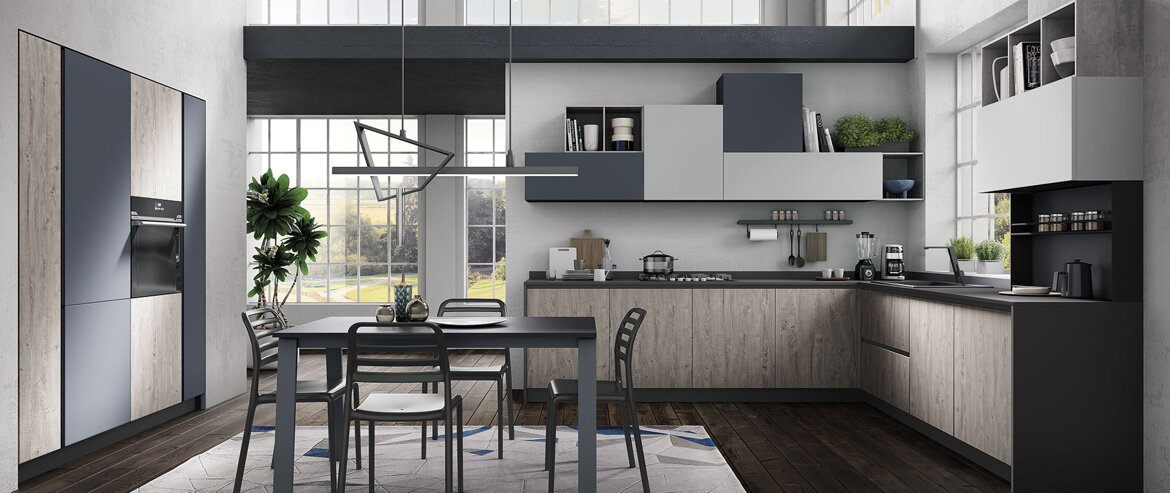 Grazie ai moduli a giorno, concepiti per disegnare le vostre idee, prende forma una cucina moderna libera da schemi e facile da configurare negli spazi più diversi.